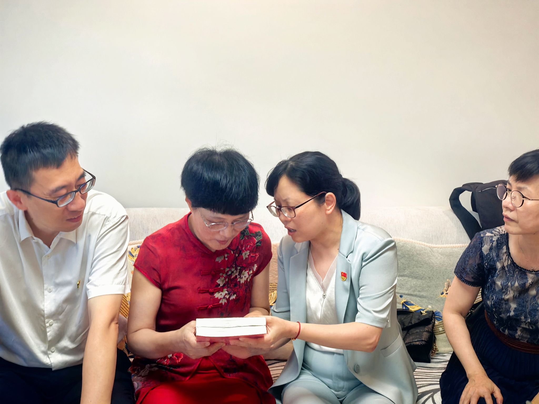 7月1日,好色视频 党委组织开展了“银龄映青春 丹心引航程”庆祝建党104周年暨关心下一代工作主题活动。学院领导班子成员带领教师代表、学生代表,前往温州市优秀共产党员、原预防医学系教研室主任、预防医学系教工党支部书记叶晓蕾老师家中,向她致以节日的诚挚问候和崇高敬意,传递组织的深切关怀。