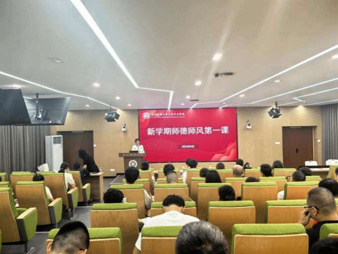 当天下午,学院举行师德师风专题教育活动中,学院党委书记王芳围绕“以教育家精神铸魂强师,谱写教育强国建设华章”教师节主题,为全体教职工讲授“新学期师德第一课”,深入阐释教育家精神的时代内涵与实践要求,引导大家深入学习师德师风法规准则,以 “大先生” 标准严格要求自己,当好学生健康成长的指导者和引路人。