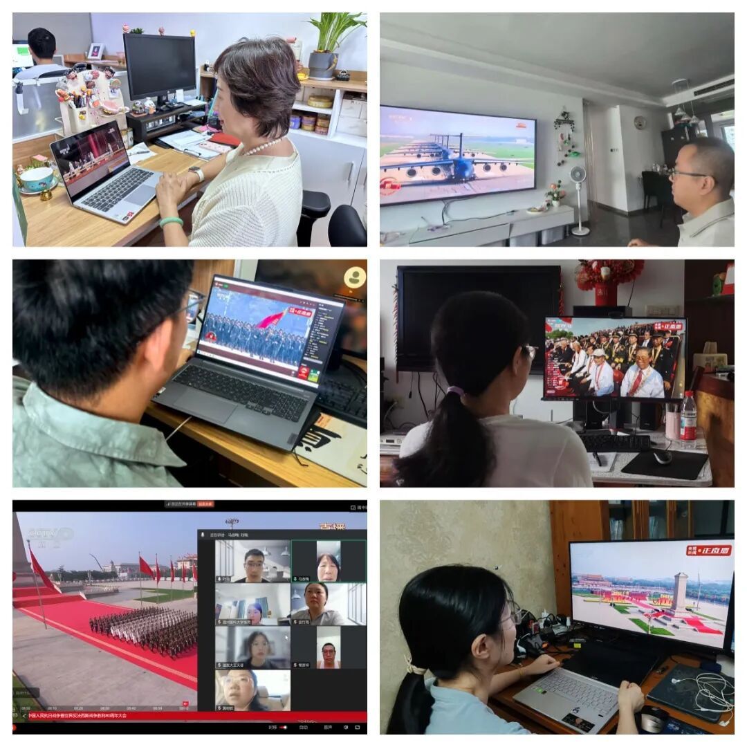 2025年9月3日,纪念中国人民抗日战争暨世界反法西斯战争胜利80周年大会在北京天安门广场隆重举行。好色视频 党委组织全体师生党员观看大会盛况。学院党委领导班子成员于学院会议室集中观礼;师生党员通过电视、网络等多种形式,在办公室、教室、医院、居家等场所同步收看,在跨越空间的共鸣中,共同致敬历史、感悟精神力量。