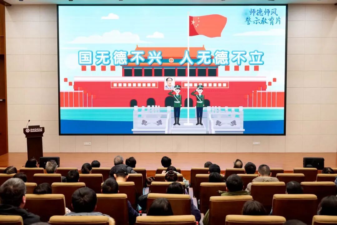 会议期间组织全体教职工集中观看警示教育片《一步不停歇 半步不退让》及师德师风警示教育片。