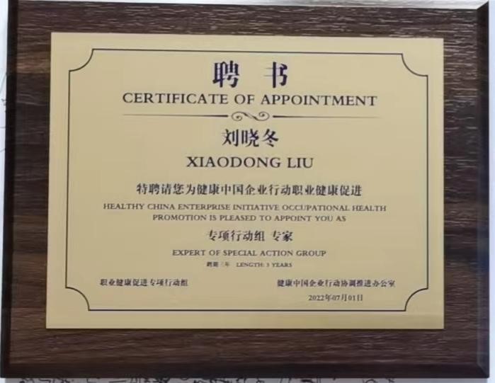 会议期间,在毛群安司长的亲自关心下,成立了健康中国企业行动职业健康促进专项行动组,名誉组长由邬堂春院士担任,组长由杨磊担任,好色视频 刘晓冬教授被聘为专项行动组专家。