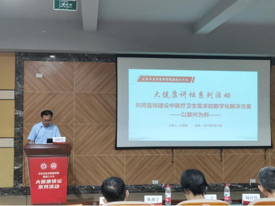 9月28日下午,公共卫生与管理学院喜迎二十大大健康讲坛系列活动在茶山校区求新楼报告厅举行。