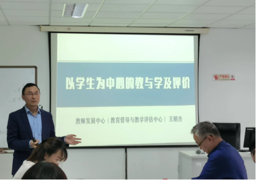 讲座上,王朝杰主任从大学演化与中心的变化和学生学习评价两方面作了详尽的阐述。王主任强调教育的根本问题是培养人,在教学中要将学生当作主要的参与者,将学生作为研究学习的对象,将学生人格的培养、综合素质的提高、分析问题和解决问题能力及学生学习能力进一步提升。王主任提到,以学习为中心的教与学,就是要以学生学习为中心、以学生发展为中心、以学习效果为中心。