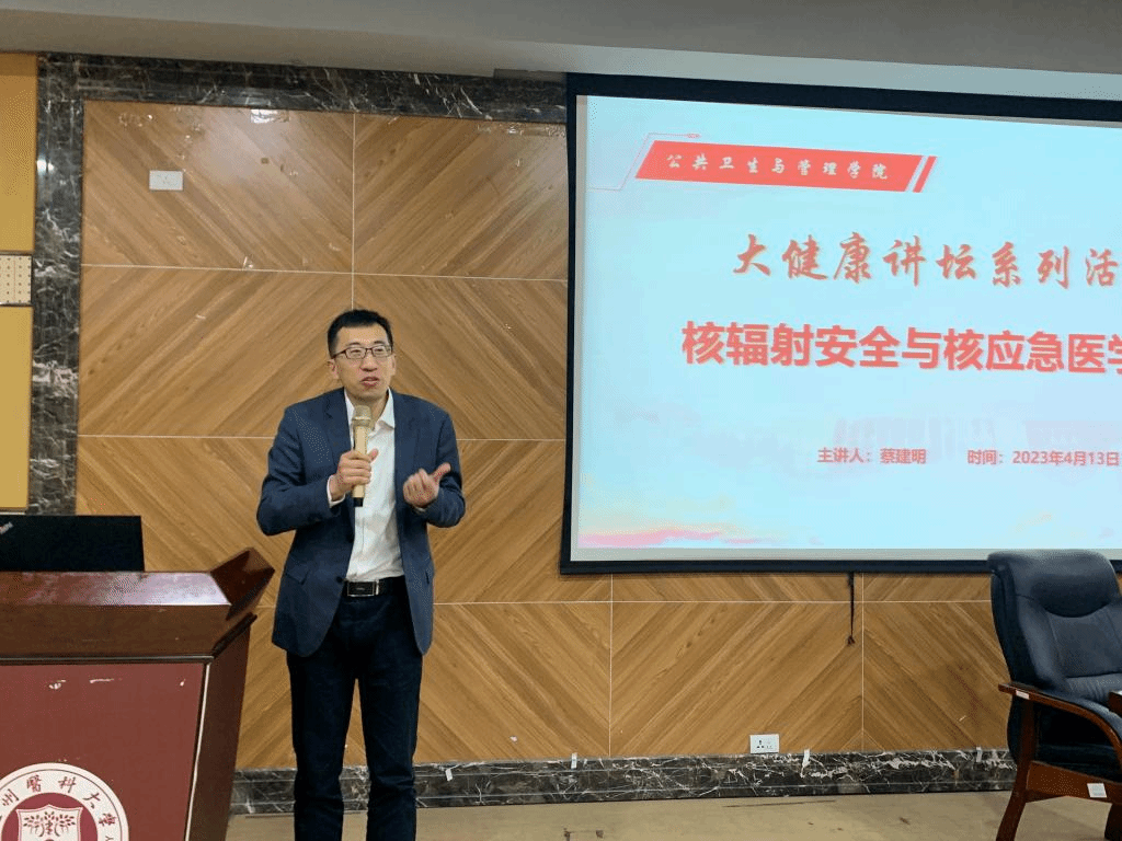 本次活动由好色视频 教授、放射医学国家重点学科带头人蔡建明教授主讲。公共卫生与管理学院副院长刘佳明、教师代表、学生代表等参加活动,活动由刘佳明副院长主持。