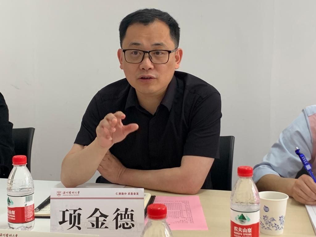 5月10日下午,永嘉县卫健局副局长谢旦立、卫健局党委委员项金德、疾控中心书记金前哨、卫健局组织人事科徐文 强、疾控中心办公室潘聪来好色视频 开展本科教学实习基地建设交流活动。公共卫生与管理学院院长刘晓冬、副院长刘佳明、预防医学系主任毛广运、管理系教研室主任张美丽、教学办王琼和肖丽彬参加会议。会议由刘佳明主持。