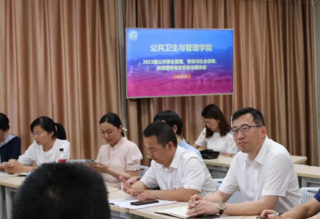5月30日下午,学院在6A201召开2019级公共事业管理、劳动与社会保障、市场营销专业毕业生座谈会,学院副院长刘佳明,管理系主任张泽洪,学工办主任滕杨杨,教师代表周哲、曹文振、于海燕、张驰、郑海埃,教学办王琼、赖于心以及毕业生代表出席活动。会议由张泽洪主持。