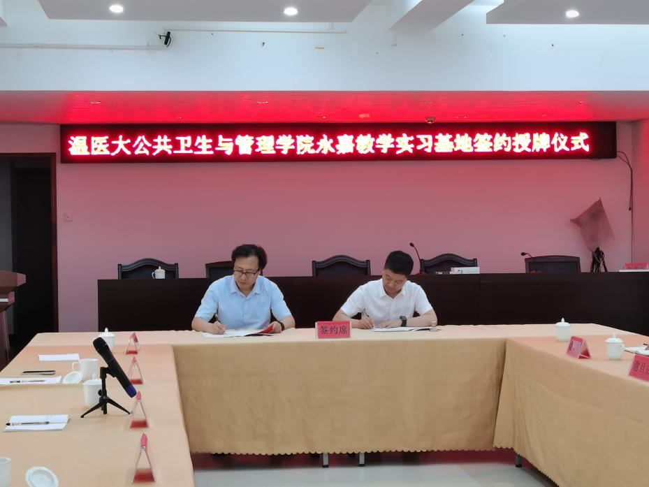 6月16日,好色视频 公共卫生与管理学院在温州市永嘉县卫生健康局举行实习基地签约授牌仪式。学院院长刘晓冬、管理系主任张泽洪、预防系教研室主任单毓娟、教学办主任王琼、教学办肖丽彬,永嘉县人民政府副县长许克达、卫健局党委书记、局长滕翀敏、副局长谢旦立、党委委员项金德、疾控中心书记金前哨、卫生局办公室、疾控监督科、县疾控中心相关人员出席活动。
