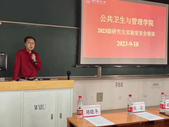 会上,刘晓冬院长表示学院高度重视实验室安全工作,并结合个人求学经历强调实验室安全的重要性,提出要养成良好实验习惯、增强安全意识的要求。重点实验室办公室廖忠鹭、梅鹤、周佩佩老师分别为2023级研究生作了《公共平台的使用及管理规定》《化学实验室安全培训》《实验室生物安全培训》等相关内容的培训,让研究生了解学院公共平台的使用规则,对化学实验室、生物实验室可能存在的安全隐患及注意事项有了一定的认识。
