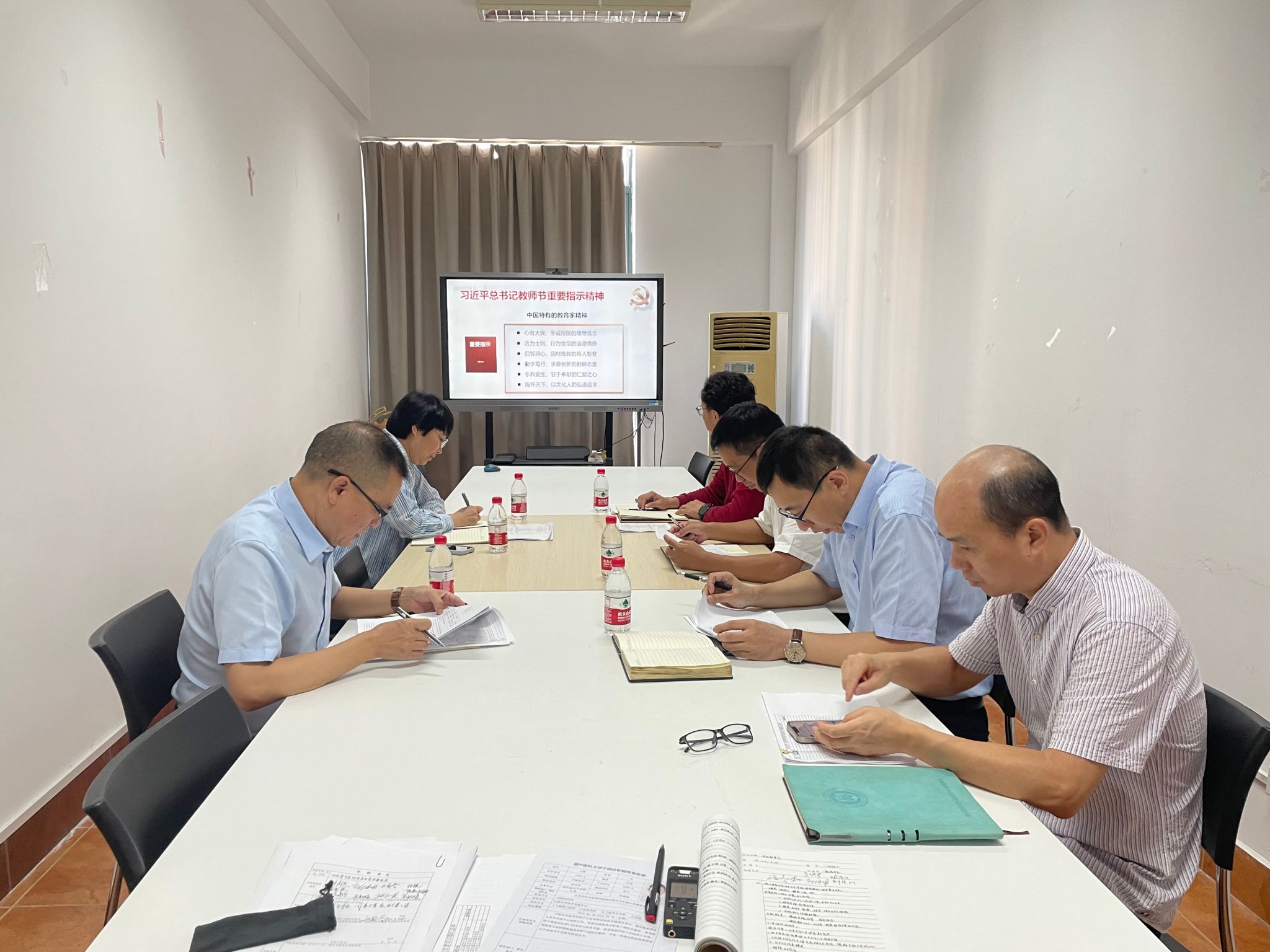 会上,马洪君带头领学了在第39个教师节到来之际习近平总书记专门给全国优秀教师代表座谈会与会教师致信。