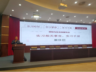 崔仕臣、张弛和张美丽分别就劳动社会与保障、市场营销和公共管理专业向学生们介绍了实习要求、实习手册完成规范。