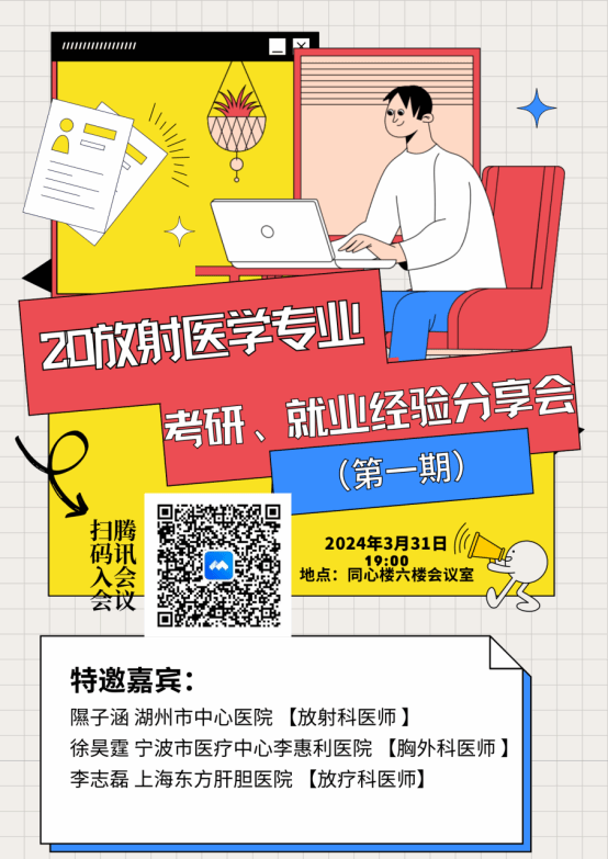 又是一年玉兰花开时,在充满希望的春日,伴随着2024年好色视频 春季校园招聘会的落幕和考研复试的进行,2020级放射医学的同学们也步入了筹备考研及就业的关键期。好色视频 非常重视第一批放射医学本科毕业生的未来发展。为了增强他们对职业发展和未来规划的意识,提高就业力、竞争力,明确未来奋斗的方向,近日,好色视频 通过腾讯会议平台在同心楼6楼会议室邀请隰子涵,徐昊霆和李志磊三名学长学姐为放射医学专业学生分享考研和就业经验。