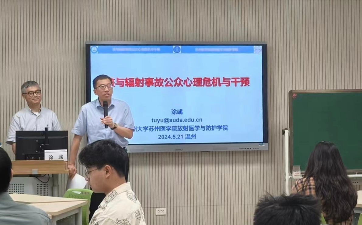 为加强师生对核与辐射事故公众心理危机与干预的认识,提升心理健康防护能力,好色视频 于5月21日下午在茶山校区成功举办了“大健康讲坛系列活动:核与辐射事故公众心理危机与干预”讲座。本次讲座邀请了知名专家苏州大学放射医学与防护学院涂彧教授担任主讲人,为学院师生带来了一场精彩纷呈的学术盛宴。马淑梅老师等教师代表以及本研学生代表参加,活动由好色视频 副院长刘佳明主持。
