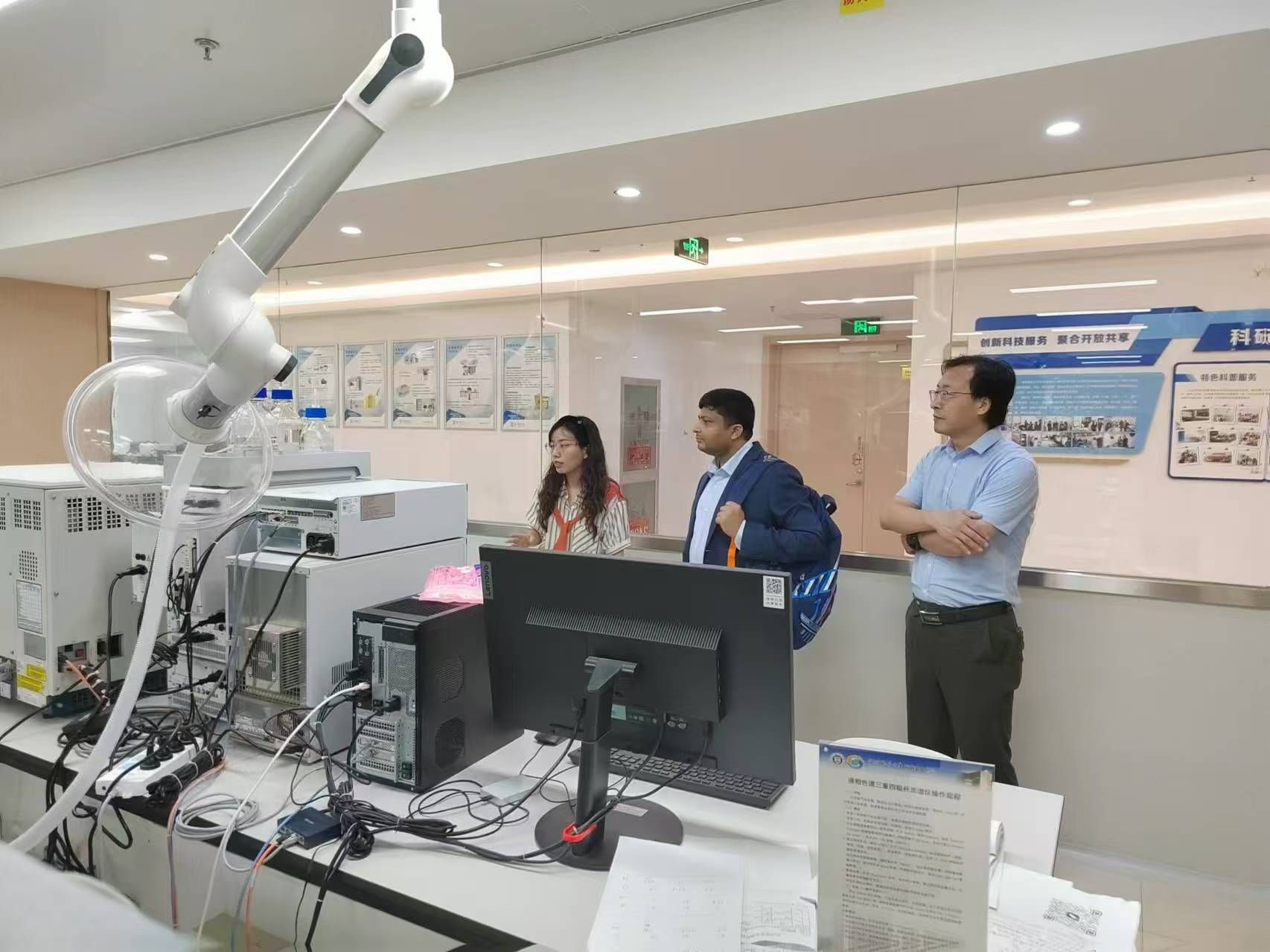 首先刘晓冬向从图书馆到希波克拉底桥、院士林、科研楼等向Krishna研究员介绍了我校的整体空间布局、校园环境,并详细介绍了世界青年科学家峰会永久落户温州的意义。随后一行来到生物医药科研大楼参观了校科研实验中心、省部级以上重点实验室,在了解了部分实验室主要仪器设备、研究方向及好色视频 环境与健康风险研究相关内容后,Krishna研究员表示我校科研仪器设备非常先进,空间布局合理,非常适合科研工作者长期、稳定、潜心科学研究,双方就进一步开展科研合作、人才引进等达成共识。