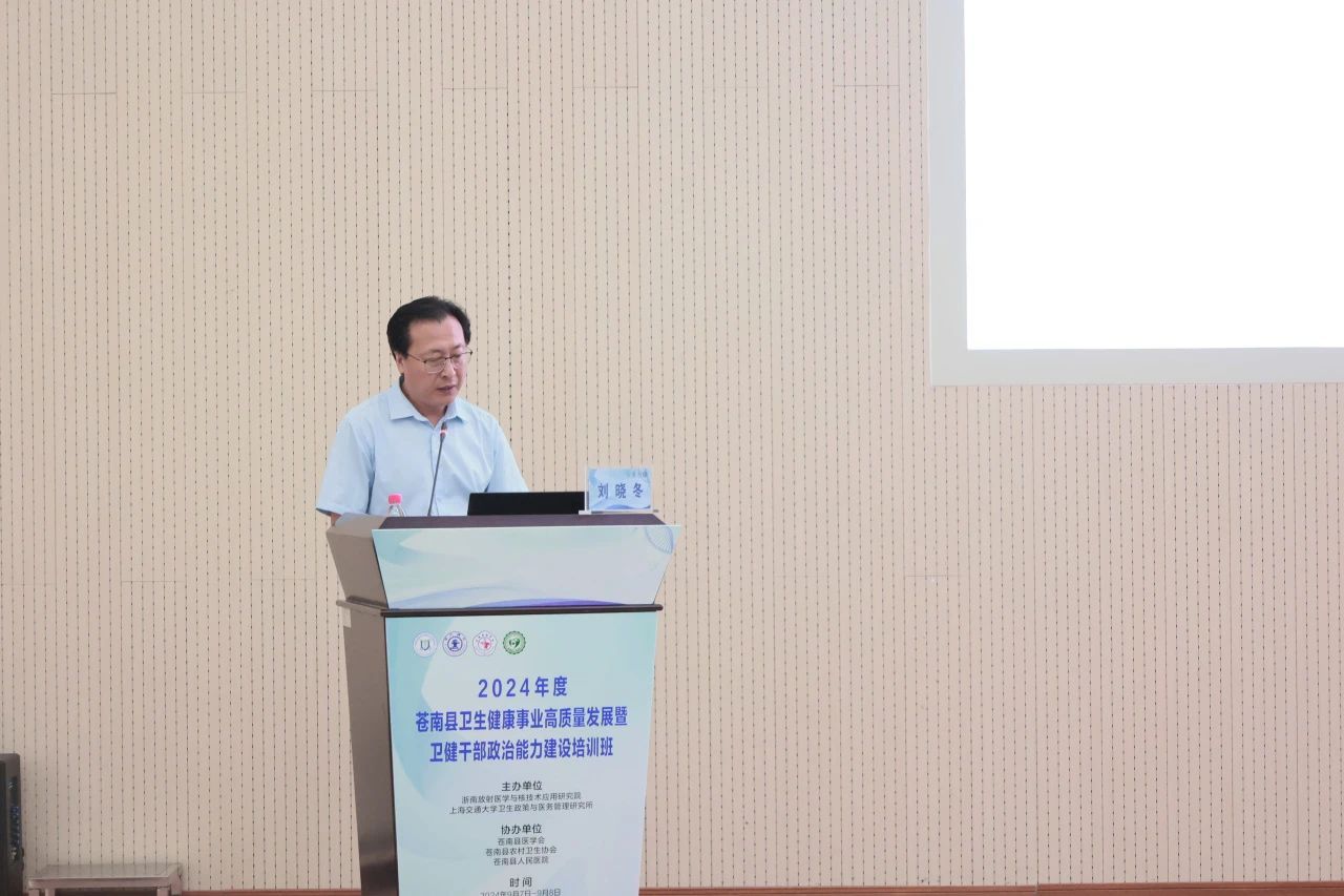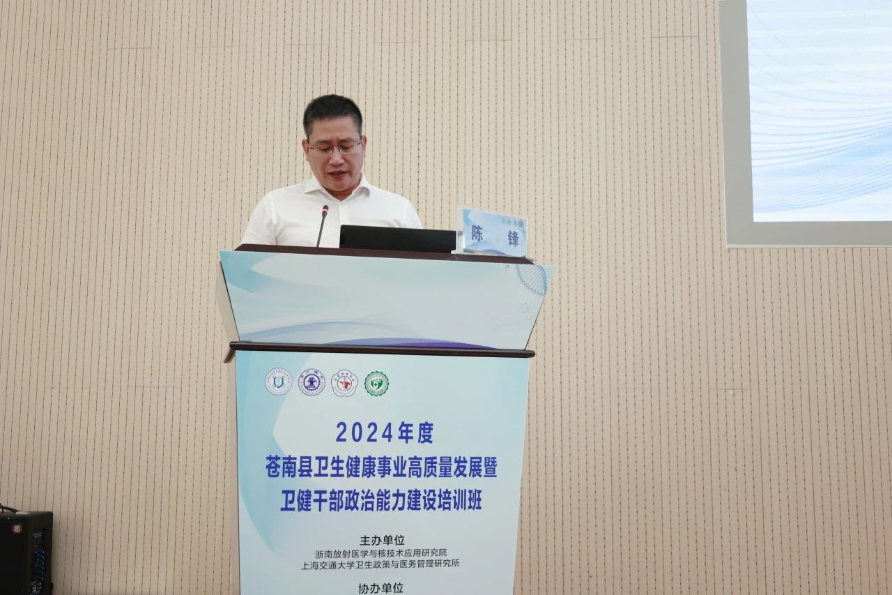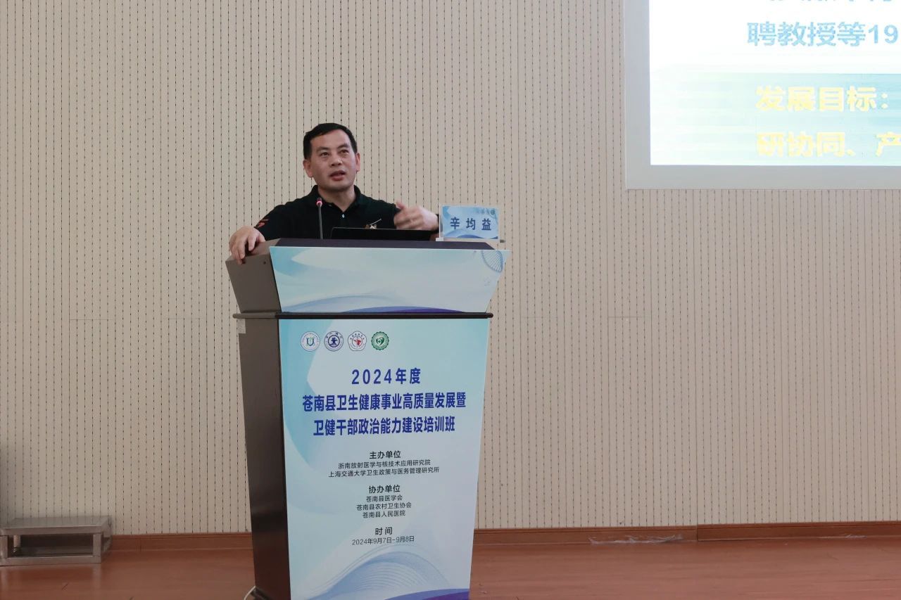 为深入开展主题教育,加强卫健系统干部政治能力建设,推进地方卫生健康事业高质量发展,持续提升公立医院现代化管理水平,推动医院从“以治病为中心”向“以健康为中心”转变,由浙南放射医学与核技术应用研究院、上海交通大学卫生政策与医务管理研究所主办,苍南县医学会、苍南县农村卫生协会、苍南县人民医院协办的“2024年度苍南县卫生健康事业高质量发展暨卫健干部政治能力建设培训班”于9月7日至9月8日在苍南县人民医院行政楼一楼学术报告厅圆满举行。