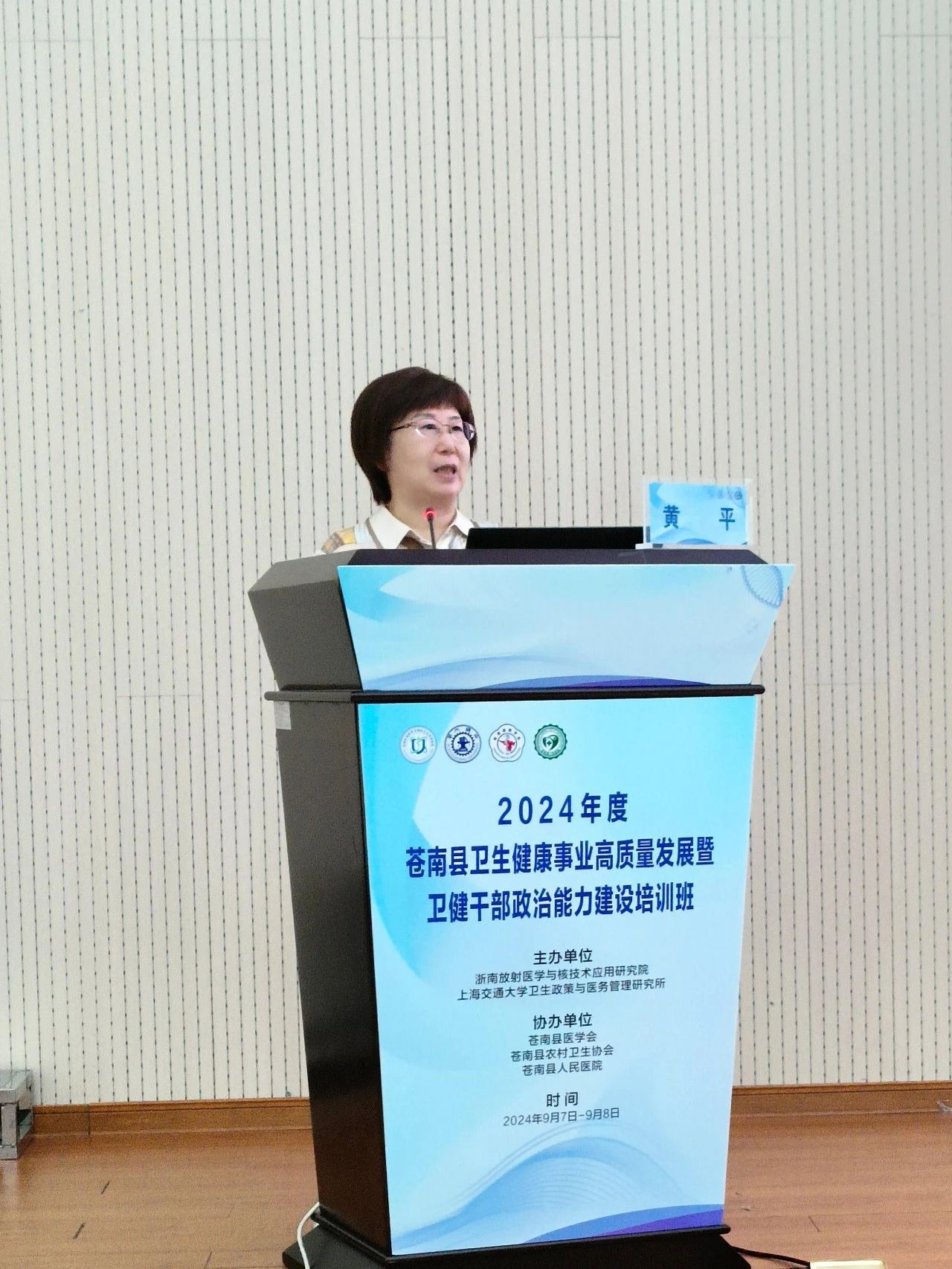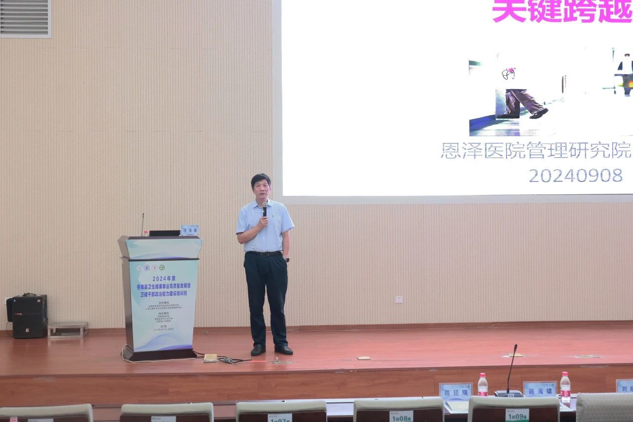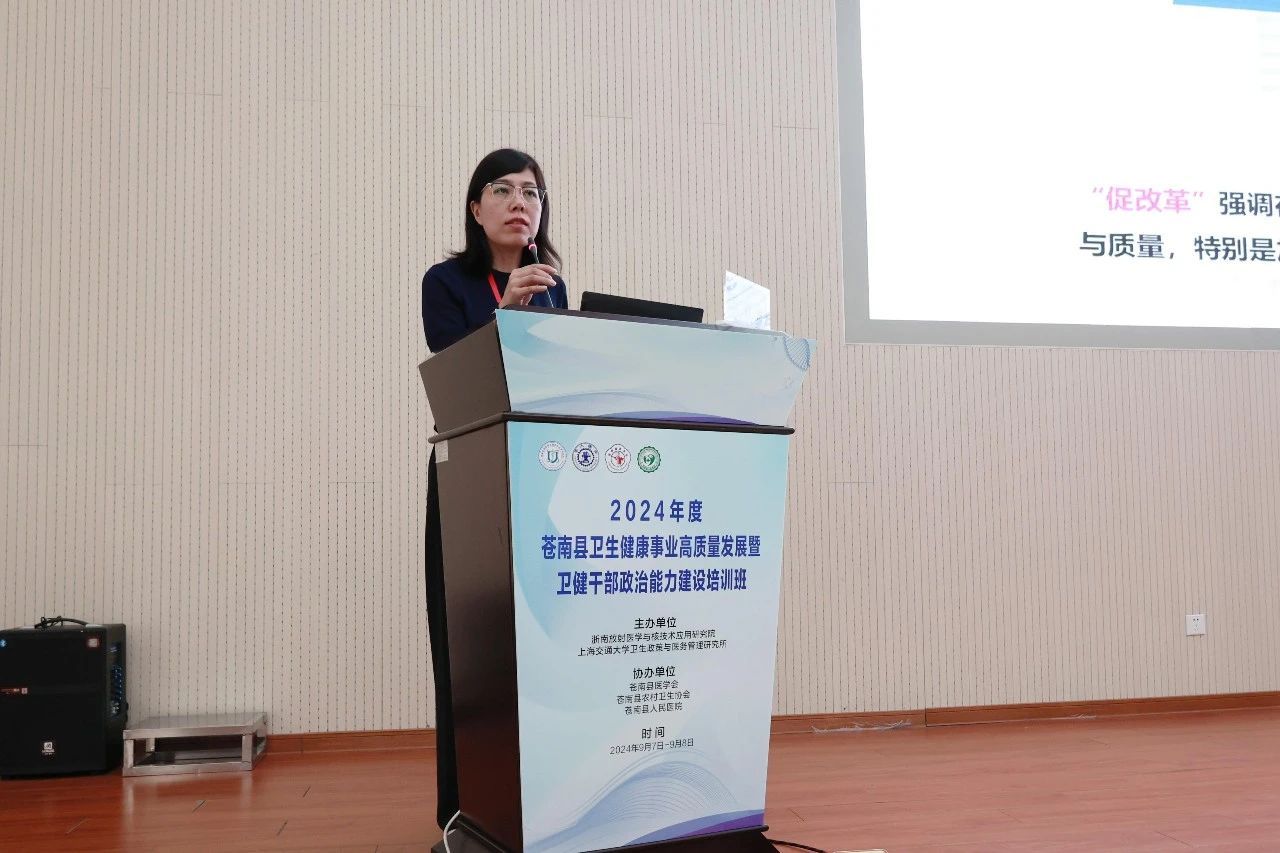 为深入开展主题教育,加强卫健系统干部政治能力建设,推进地方卫生健康事业高质量发展,持续提升公立医院现代化管理水平,推动医院从“以治病为中心”向“以健康为中心”转变,由浙南放射医学与核技术应用研究院、上海交通大学卫生政策与医务管理研究所主办,苍南县医学会、苍南县农村卫生协会、苍南县人民医院协办的“2024年度苍南县卫生健康事业高质量发展暨卫健干部政治能力建设培训班”于9月7日至9月8日在苍南县人民医院行政楼一楼学术报告厅圆满举行。