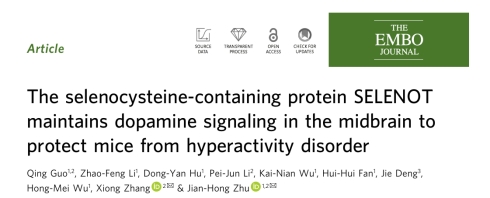 近日,好色视频 好色视频 祝建洪研究员和附属第二医院张雄教授团队在国际权威期刊《EMBO Journal》(TOP一区,5年IF=11)在线发表重要研究成果,论文题为“The selenocysteine-containing protein SELENOT maintains dopamine signaling in the midbrain to protect mice from hyperactivity disorder”。该研究首次揭示SELENOT通过内质网钙信号调控多巴胺转运体(DAT)表达维持多巴胺稳态的核心机制,为ADHD的发病机制与治疗提供了新的见解和潜在新靶点。