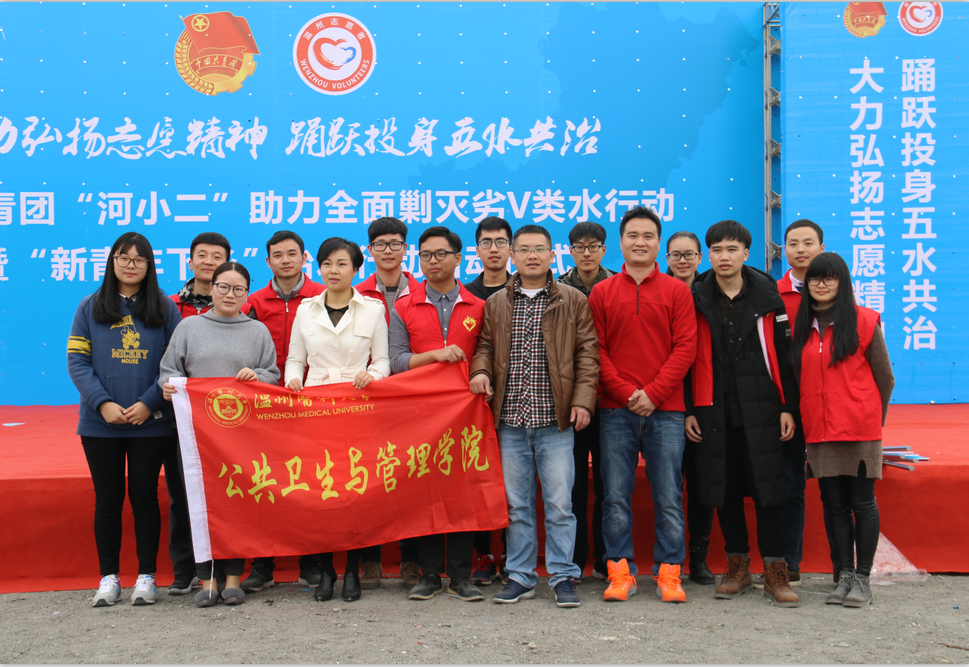 为大力弘扬志愿精神,踊跃投身五水共治,公共卫生与管理学院-浙南谁科学研究院派出一支新青年下乡治水小分队,参加团市委新青年下乡治水行动启动仪式。启动仪式于34日早上九点在瓯海区梧田街道塘栖村举行。到场的主要领导和来宾有市委常委、宣传部部长胡剑谨同志、瓯海区委常委副书记何宗静同志、市委宣传部副部长张贤孟同志、团市委书记林小露同志等。